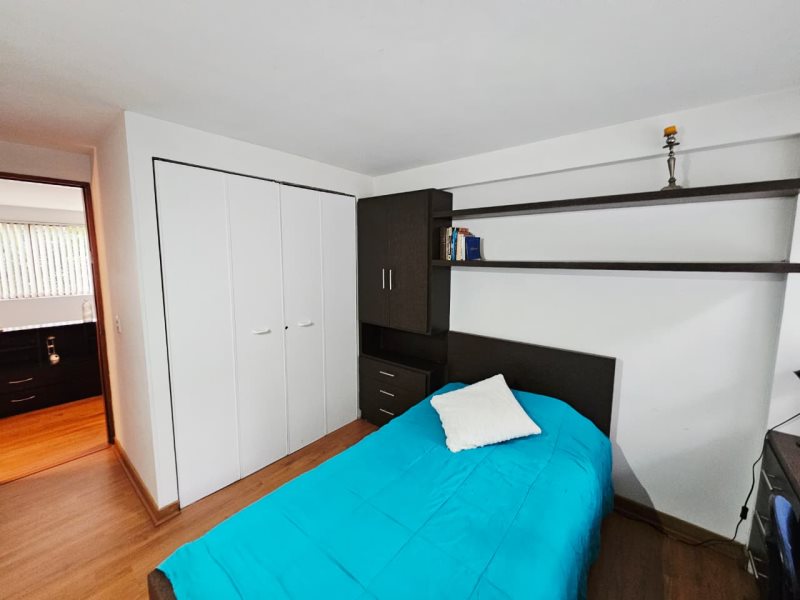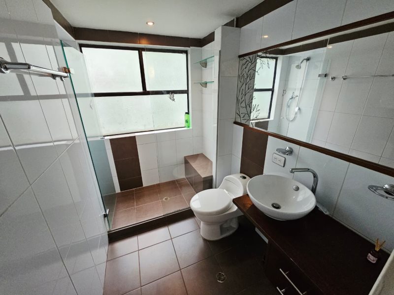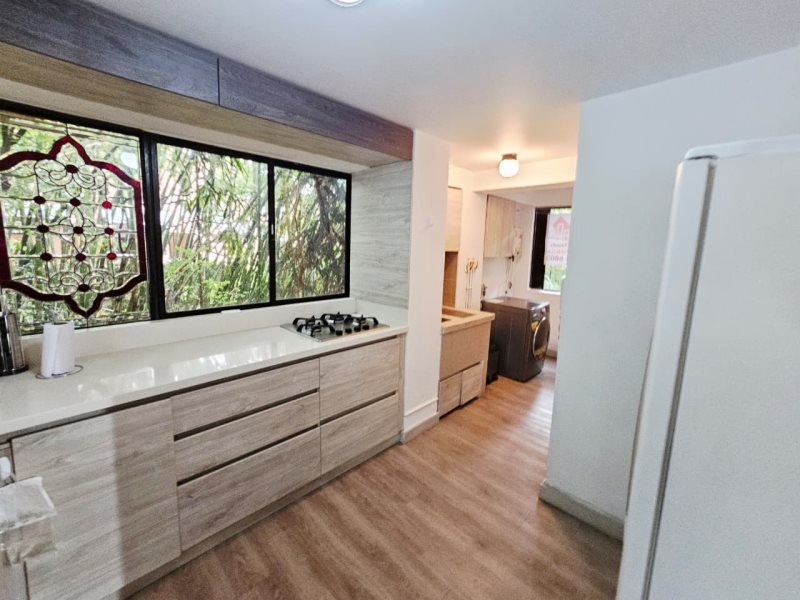 Cuenta con 2 alcobas, 1 closet en madera, 3 Baños cabinados, sala y comedor, biblio-estudio, cocina integral, meson en cuarso, red de gas, calentador a gas, piso en madera laminada, tiene citofono, balcon y zona de ropas.