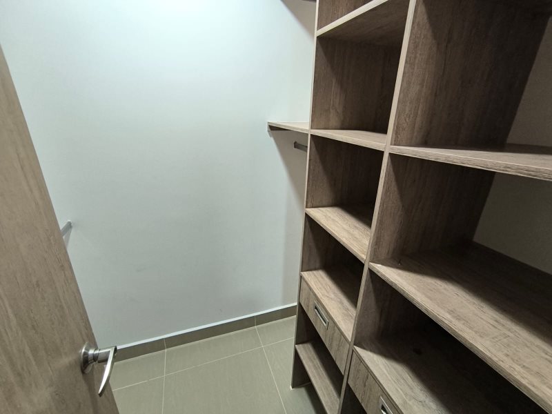 Cuenta con 3 alcobas, 2 baños, 2 clósets, 1 vestier, biblioteca o estudio, sala-comedor, cocina integral, balcón, zona de ropas, parqueadero doble lineal y cuarto útil.